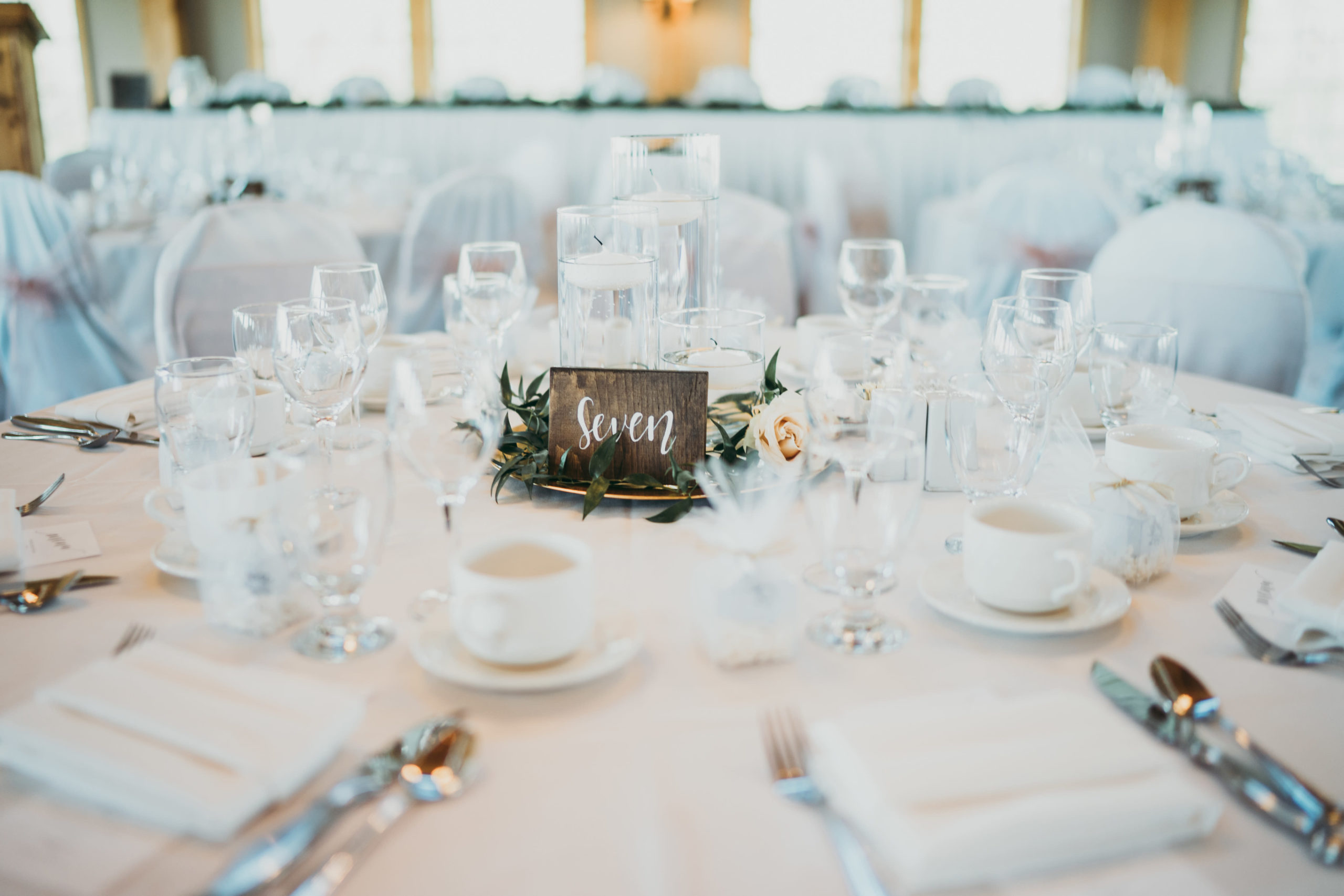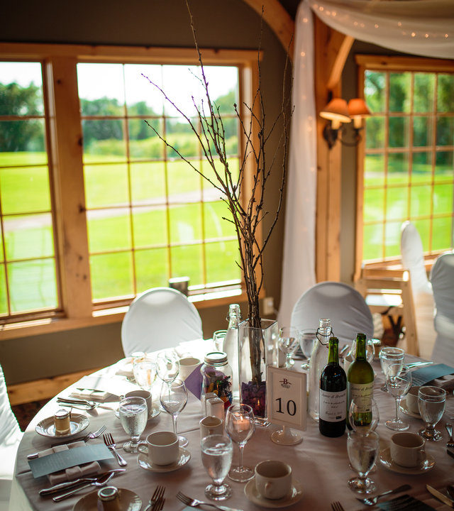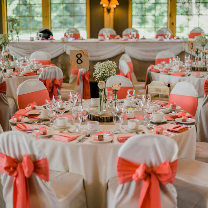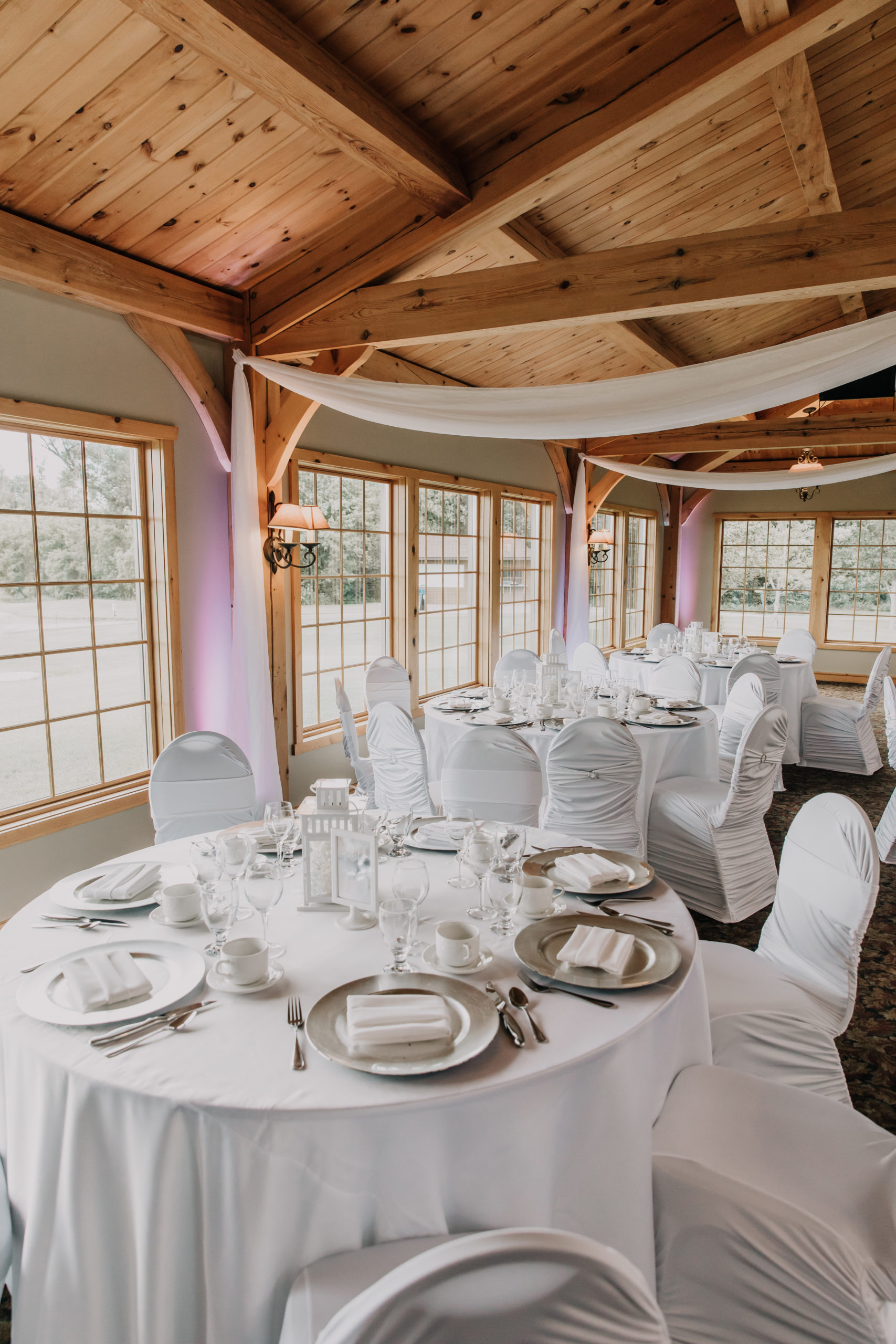 - Wedding Room Rental Fee $350.00 with ceremony, $500.00 without ceremony – includes white table cloths; cotton napkins; white table decor for head table, guest book table and cake table; risers for the head table; table number stands; white draping across the pillars; projection screen; easel; podium and microphone; and cafe bistro lights throughout the room!
